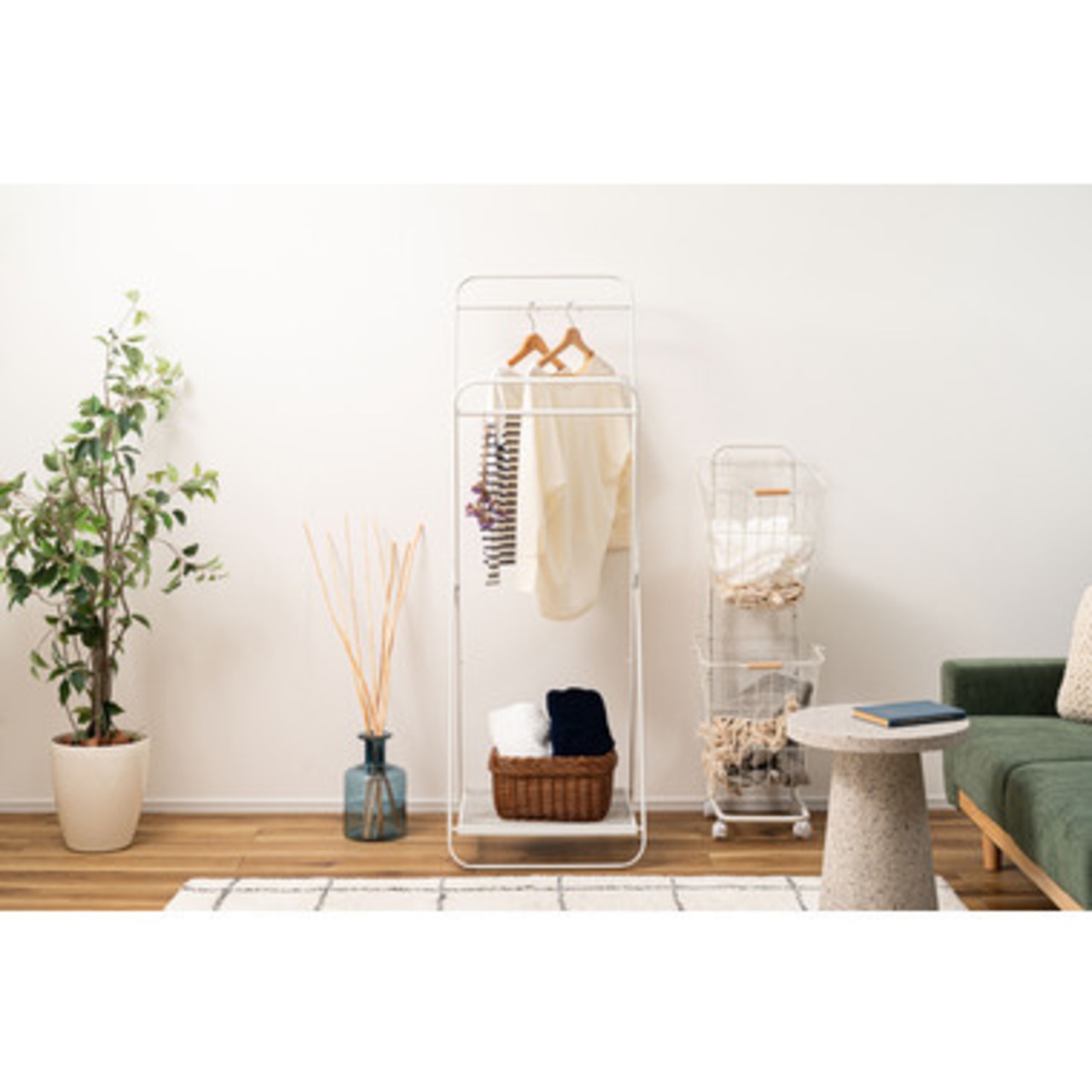 省スペースデザインで場所を取らず、スッキリ置けるフォールディングハンガー。