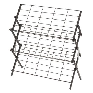 スチール素材で通気性も良く、見た目もサイズもスッキリとしたデザインのシューズラック。更に、折りたたみが可能なので、使わない時は場所を取らずに収納しておけます。斜めの収納棚で、取りやすい設計。かかと部分のストッパーで靴が滑りにくい。スリッパラックとして、コレクションラックとして。フックが掛けられるので靴べらや折りたたみ傘の収納も。