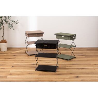 あらゆる場所でマルチに使えるフォールディングラック。場所を選ばず、散らかりがちな小物類を手軽にまとめて収納。