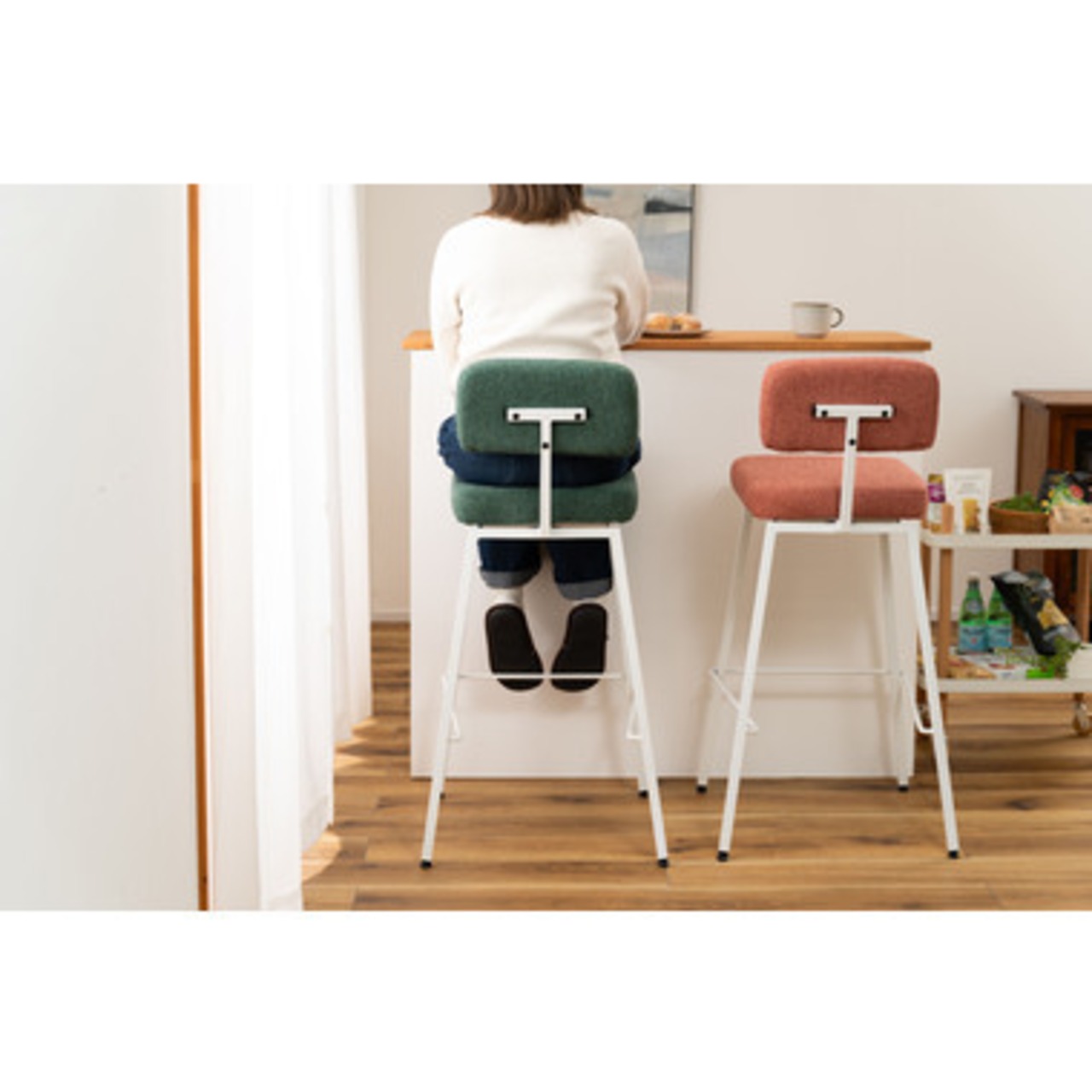 ホワイト脚のカジュアルなハイチェア