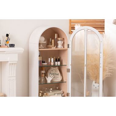 アンティーク扉のようなガーリーなコレクションシェルフ 北欧 ナチュラル 収納家具 コレクションラック リビング