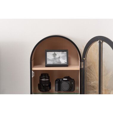洋風のアンティーク扉のような、可愛いフォルムのコレクションシェルフ。