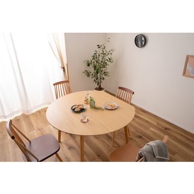 省スペースでも、ラウンドタイプのテーブルとして使用できます。4人掛けとして使用にも十分な広さのテーブルです。