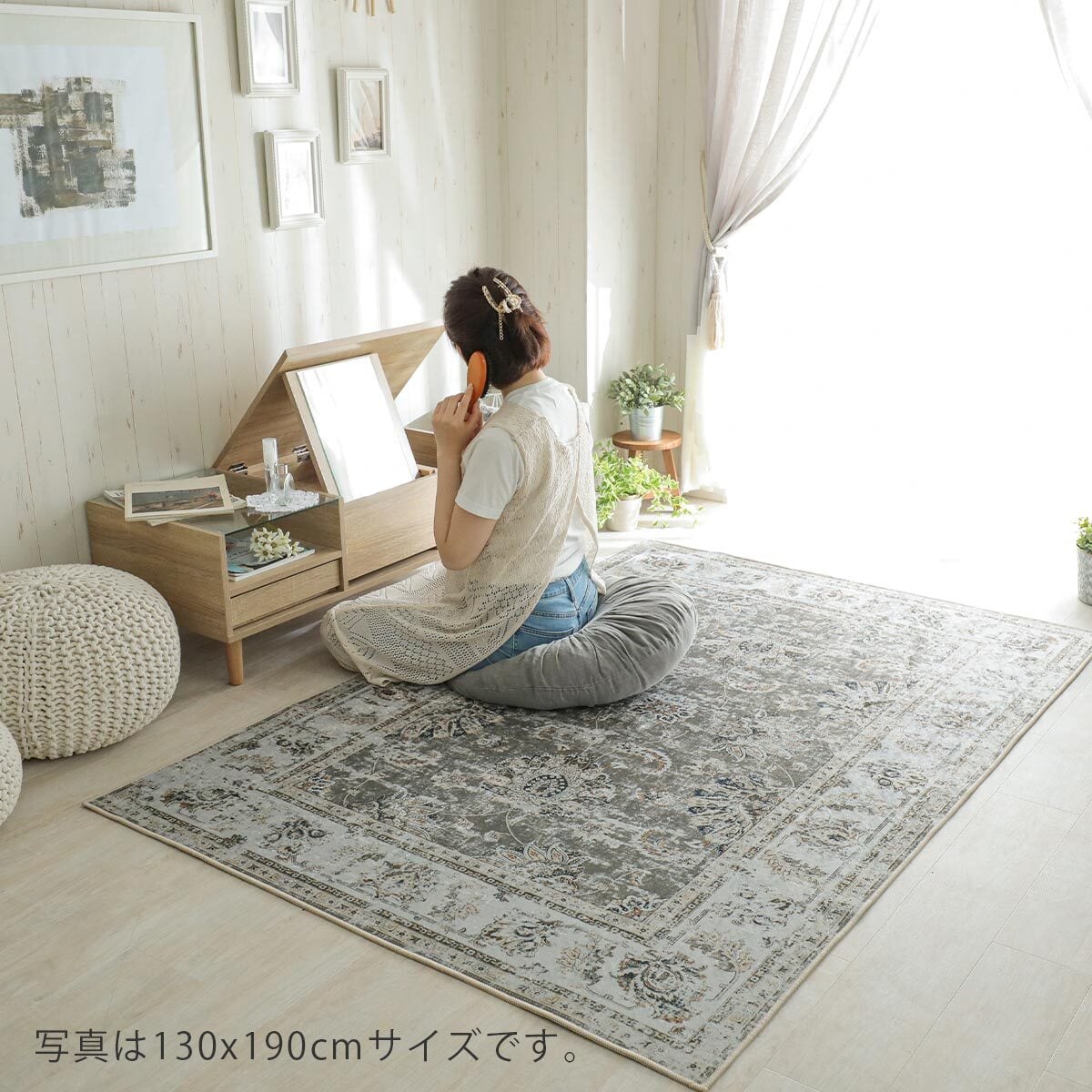 シャビーシックなペルシャ絨毯風の洗えるプリントラグ 190×190cm