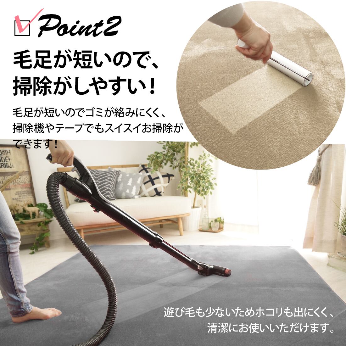 全厚約20mmで底付き感も軽減し、毛足が短く、ゴミが絡みにくいため掃除がとっても簡単です。