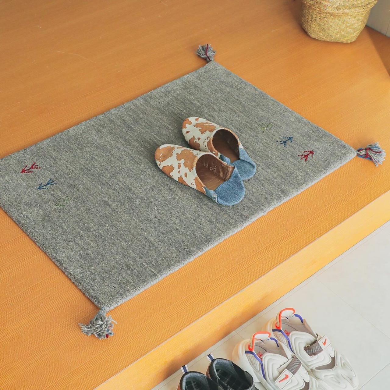 ウール100%インド製手織りギャッベの玄関マット 40×60cm