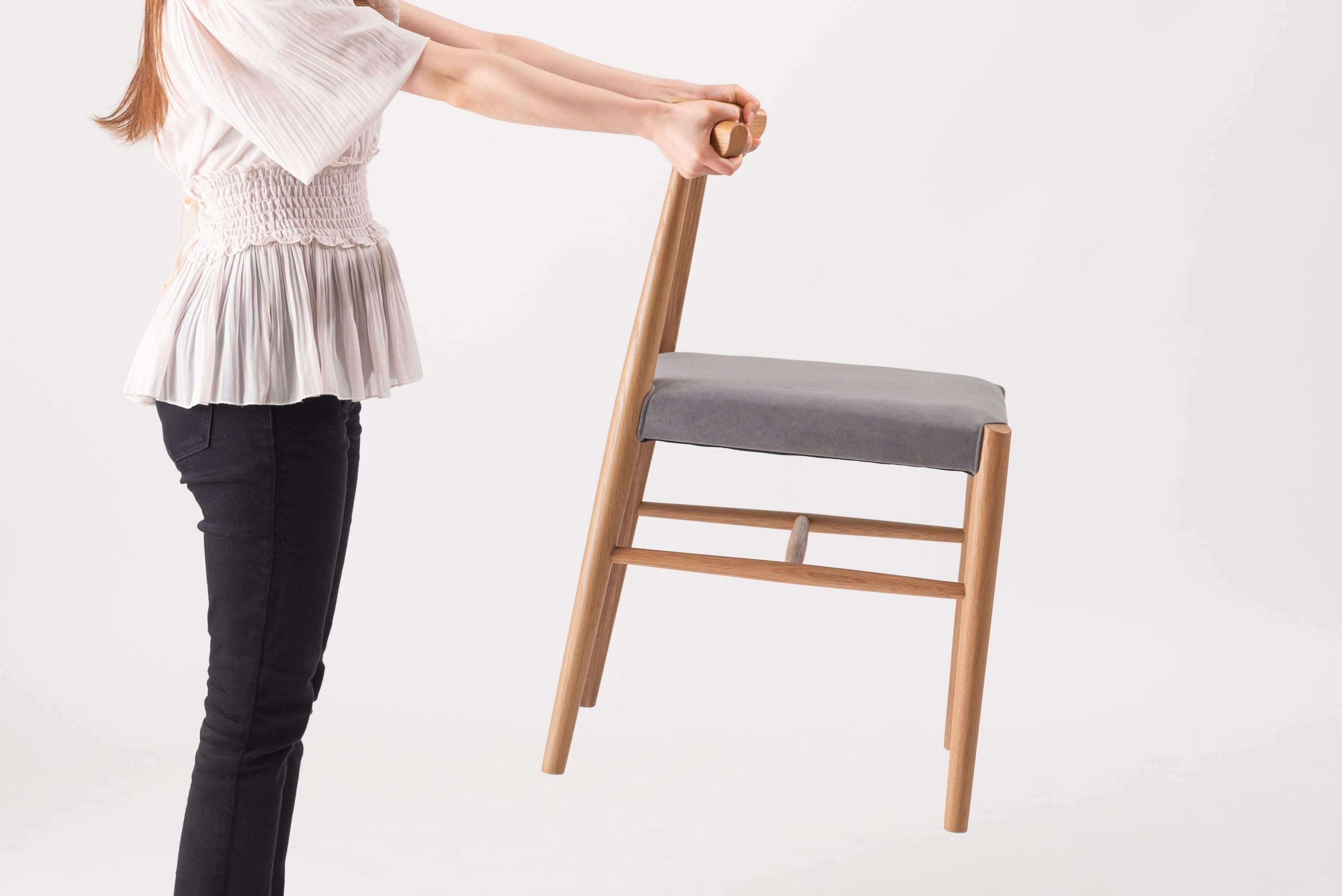 座板を使用しない軽量設計で、片手で持ち上げられ、立ち座りする際や、掃除の時などスムーズに動かすことができ、音も気になりません。