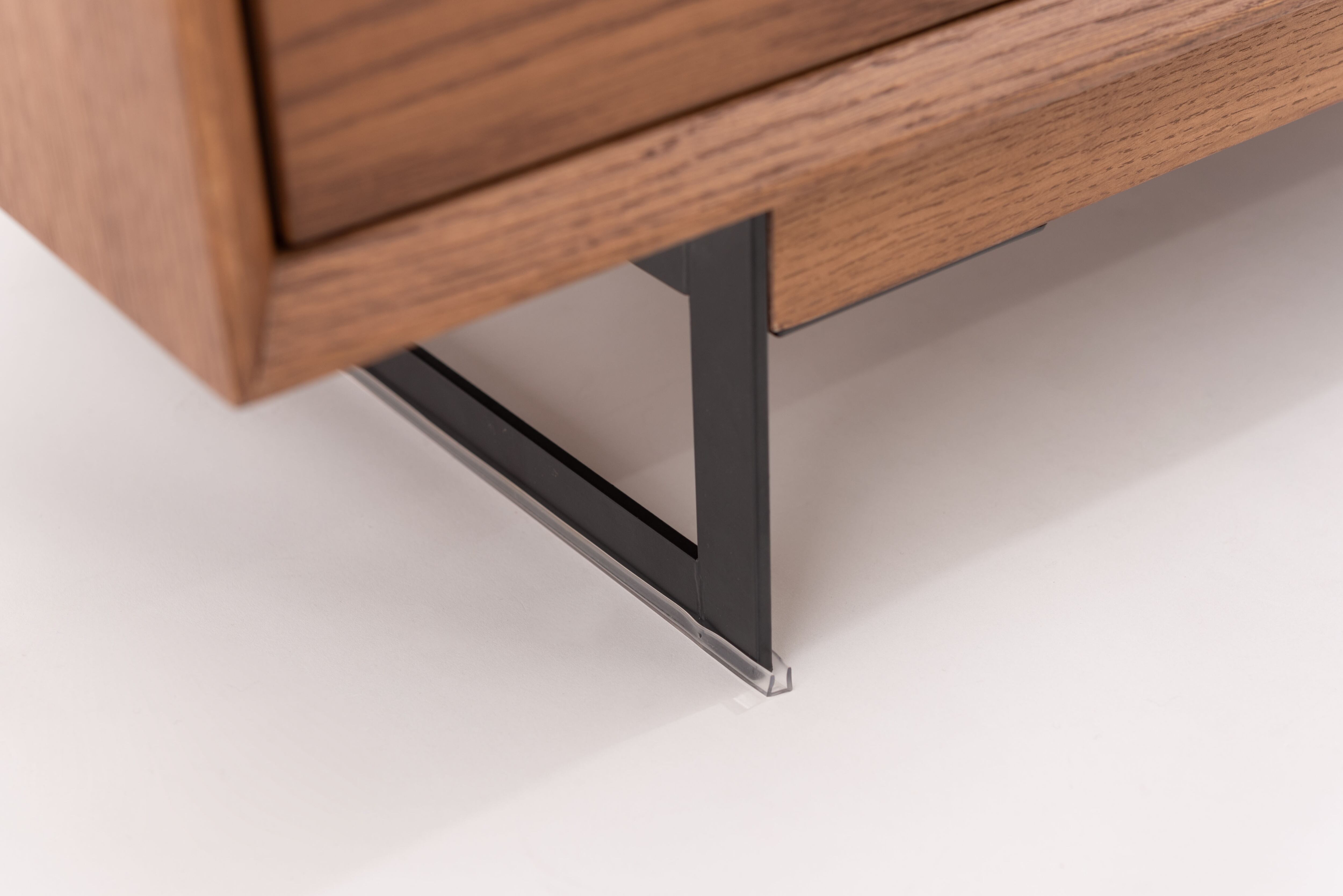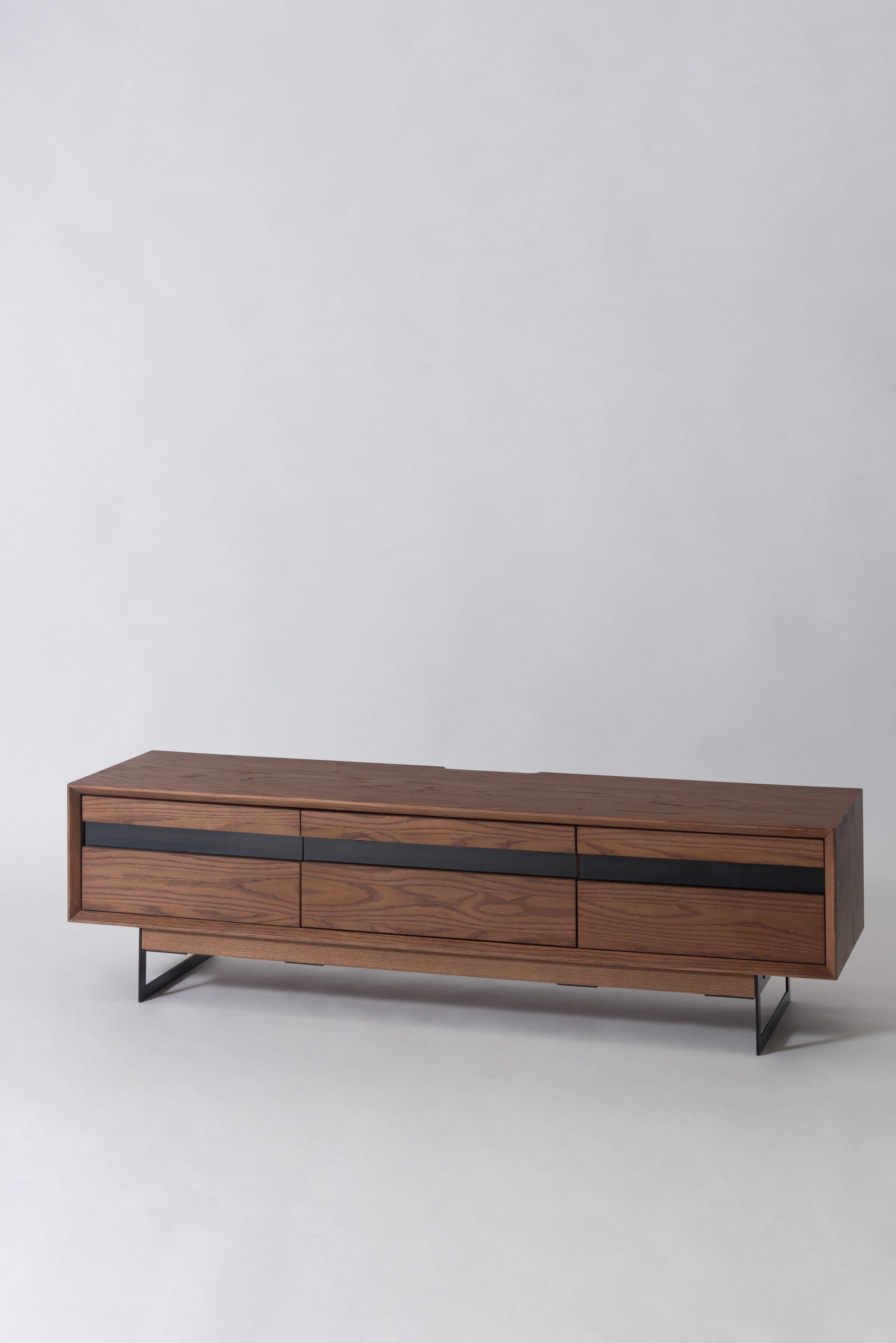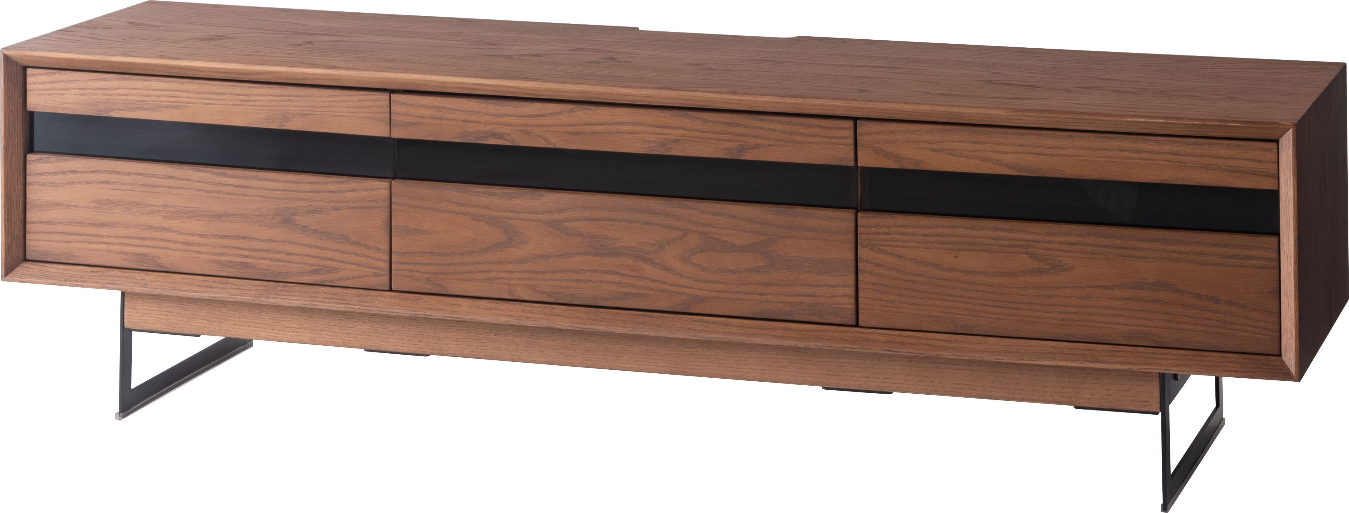 薄く設計されたスチール脚がスタイリッシュで、モダンな印象のローボード テレビ台。